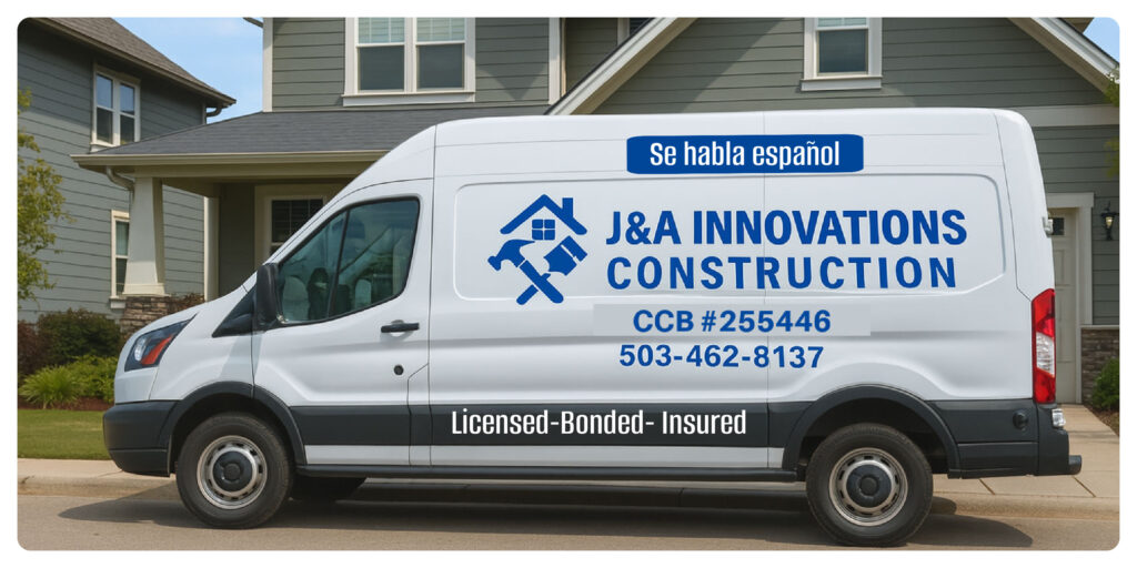 A: Yes! J&A Innovations Construction is fully licensed, bonded, and insured in Oregon. Our CCB# is 255448, and we follow all local codes and safety protocols.